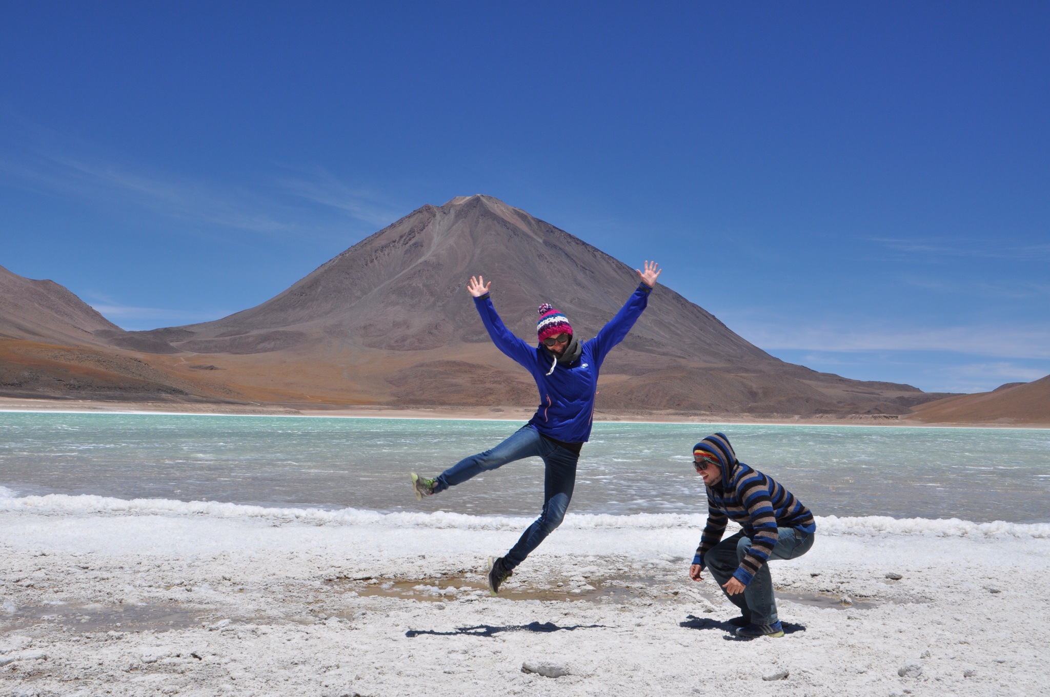 Am zweiten Tag besichtigten wir unter anderem Salzseen, in welchen man immer noch Salz abbaut. Weiter besichtigten wir eine Geysir Landschaft und die unglaubliche Laguna Verde. Nur das Timing der Hauptakteure stimmte beim Fotoshooting nicht so ganz 😄.